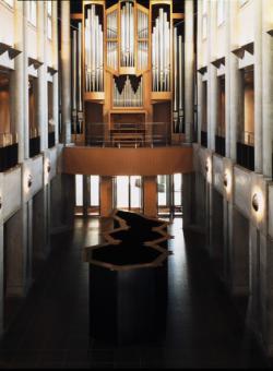 It consisted of 17 pieces selected from 25 years of his production, including Colonna in 1972, famous works not yet displayed in Japan and new works for this occasion, such as Voluta and Ombra di angelo. The exhibits were placed not only in the Gallery but in the Entrance Hall and outdoors. They were never too small in number. The exhibition space was thickly filled with the art of Nagasawa. Different materials (marble, brass, paper, gold, iron, wax, wood) wholly attested the richness of expression rather than their variety. The Nagasawa style was found in his treatment of each material. The exhibition made it possible to visually experience an artistic view the singular artist had come to hold. Incidentally, Oro di Ofir was reproduced for the exhibition after an interval of 22 years.