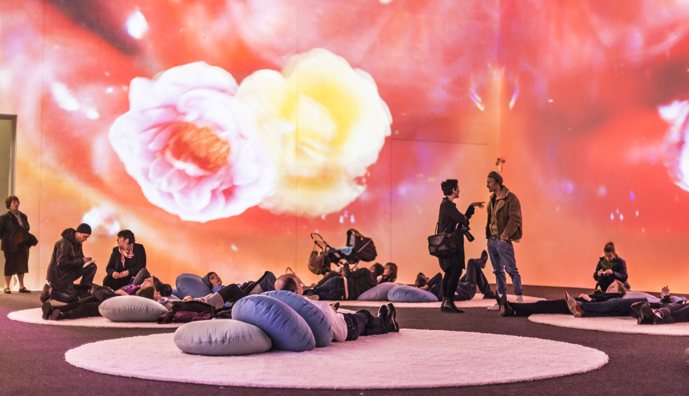 Rist’s video installations, which feature humorous snatches of images depicting a realm of vivid color, sensorially stimulating music and comforting spatial design, have attracted audiences of all ages from all over the world. This exhibition consists of about 40 works dealing with themes such as the body, gender, nature, and ecology. Functioning as a complete overview of Rist’s approximately 30-year career, the retrospective encompasses everything from the artist’s early short videos focusing on the female body and identity; the recent large-scale installations, which gently extols a symbiosis between nature and humans on a panoramic screen; living rooms like installation where videos coinhabit in miscellaneous goods and furniture; and the recirculating everyday objects into artworks that have been consistent in Rist’s practice since the 1980s.