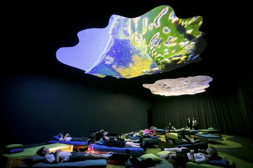 This exhibition will provide an opportunity for viewers to gradually unravel the serious themes of contemporary society together with their own bodies through works that invite viewers to have a playful visual experience, through their own actions such as lying down on a bed or cushions and relaxing or sitting around a dinner table.