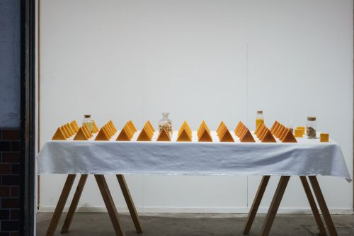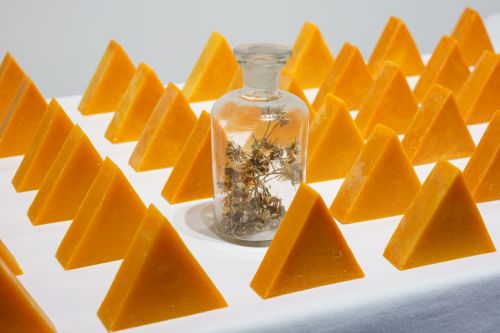 Since the beginning of her career, Enomoto has presented spatial installations composed of drawings, texts, photographs, videos, and other various media. More recently, she has also developed her interests in materials such as herbs and beeswax, which are used to heal wounds, and has incorporated them into her work and activities.