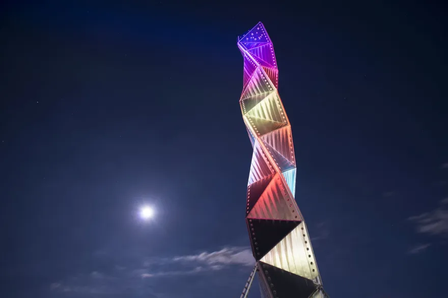 日本のライトアートの草分け的存在。宇宙線の信号がLEDの光に変換される“宇宙線シリーズ”、2000年の皆既月食時に棚田に設置された18個の巨大な鏡が月光を捕らえる“ルナ-プロジェクト”は宇宙をテーマとした代表的な作品。