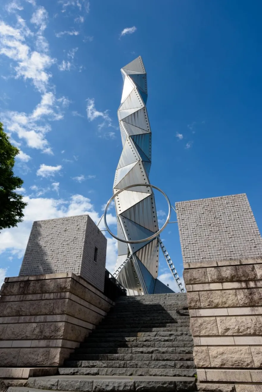 天に向かって伸びる らせん形が「過去から未来へ」あるいは「伝統から創造へ」を象徴しています。