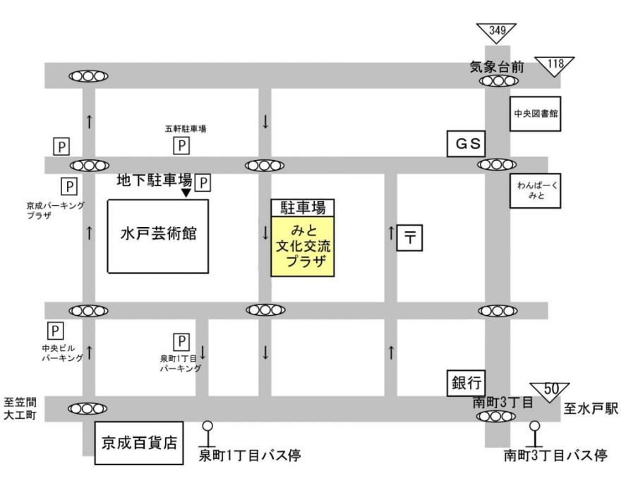 ※みと文化交流プラザの駐車場は台数に限りがあるため、水戸芸術館地下駐車場など周辺駐車場をご利用ください。