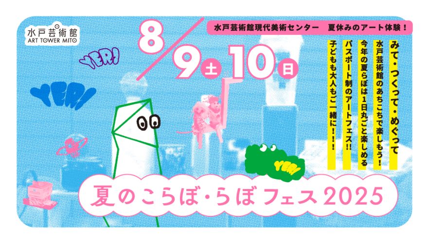 静岡県浜松市で楽しく愉快に活動している7人のアーティストのチーム「そろそろ art in progress」がアートなおまつり「ヤー!ヤー!ヤー!」を開きます。しかも、特別ゲストを呼んで水戸バージョン。かわいい模様をつけたり、自由な木の工作をしたり、耳をすませて音集めをしたり、オリジナルの人形劇やコマ撮り動画を作ったり…!遊び方は無限大!水戸芸術館のあっちこっちで、おもしろいことをやってみよう。