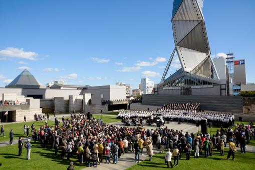 水戸の年末の風物詩ともなった300人の《第九》が今年も開催されます。一般公募の市民など300名以上の大合唱団が、9月から練習を重ね、シンボルタワーの下、水戸の街へ歌声を響かせます。1999年から始まったこの企画は、今年で17回目を迎えます。