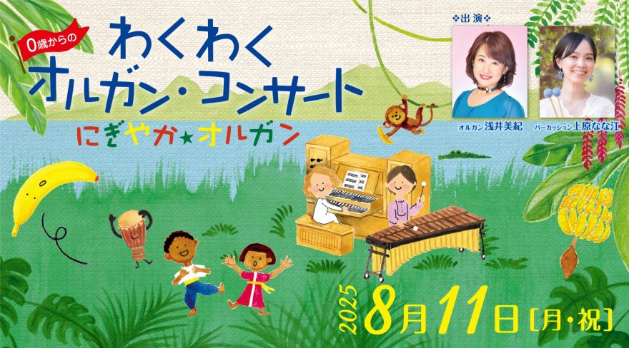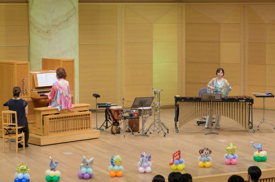 出演は、これまで水戸市内の幼稚園・保育園等を対象にした当館の人気企画「幼児のためのオルガン見学会」で、のべ約23,000人もの子どもたちにオルガンの魅力を伝えてきた、オルガニストの浅井美紀さんと、クラシック音楽はもちろん、アニメや映画・テレビ・ゲーム音楽など、さまざまなジャンルで活躍する打楽器奏者の上原なな江さん。