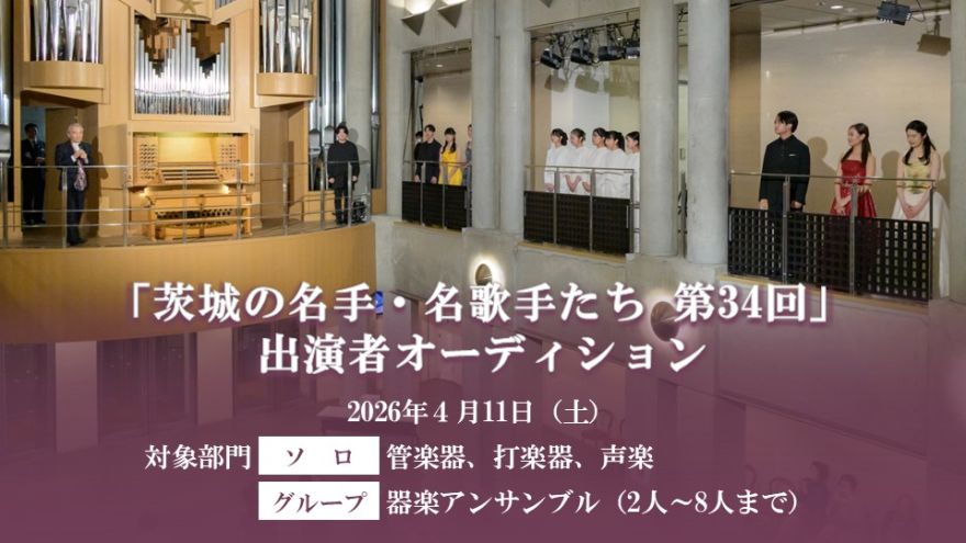 茨城の名手・名歌手たち 第34回 出演者オーディション審査部門:管楽器、打楽器、声楽(以上ソロ)、器楽アンサンブル(2人~8人)