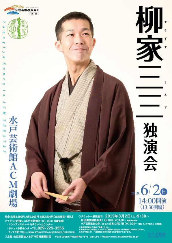 ※前売り券は完売いたしましたが、キャンセル券がございましたので、当日券を公演日の朝9時30分より電話受付いたします。【☎029‐225‐3555】