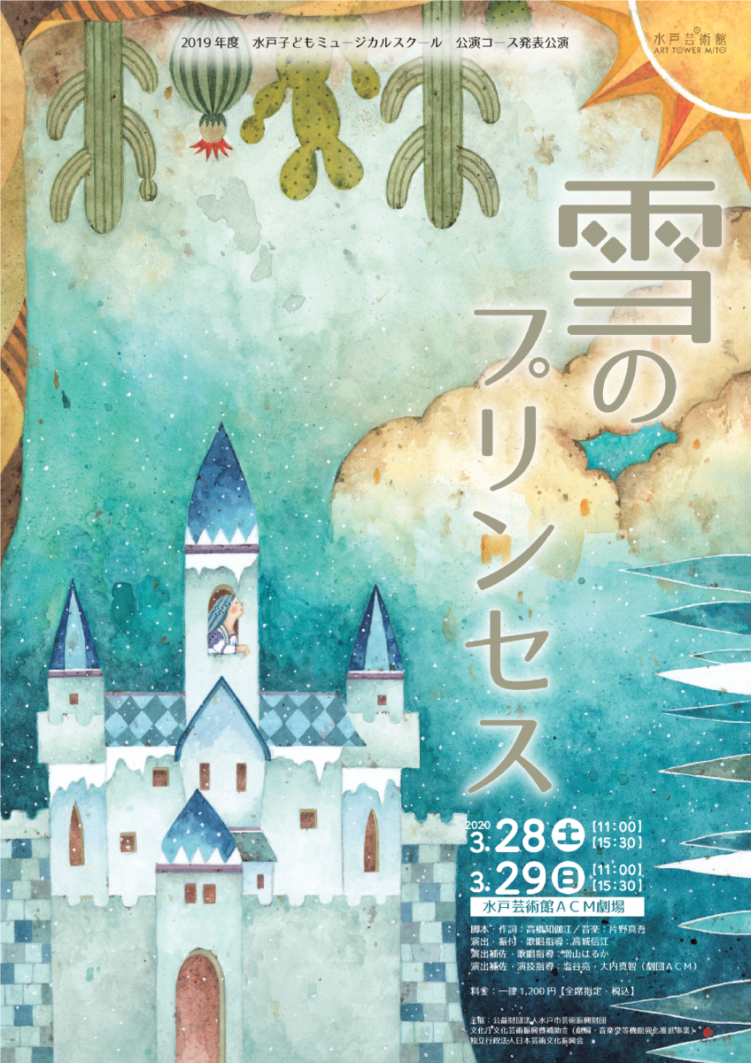 水戸芸術館は水戸市の方針に基づき、新型コロナウイルスに対する感染拡大防止のため、2020年3月2日(月)より2020年3月31日(火)まで臨時休館とさせていただくこととなりました。それに伴い、3月28日(土)、29日(日)に予定しておりました2019年度水戸子どもミュージカルスクール公演コース発表公演「雪のプリンセス」は公演を中止させていただきます。