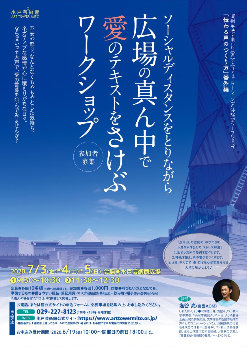 演劇手法を用いた《声》と《コミュニケーション》の体験型ワークショップ「伝わる声のつくり方・番外編」「ソーシャルディスタンスをとりながら広場の真ん中で愛のテキストをさけぶワークショップ」