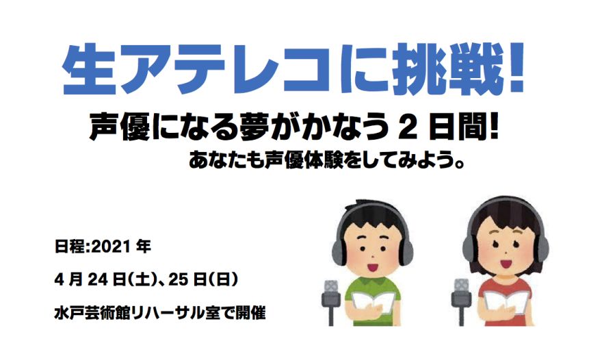 声優になる夢がかなう2日間声優チャレンジワークショップ 生アテレコに挑戦あなたも声優体験をしてみよう。