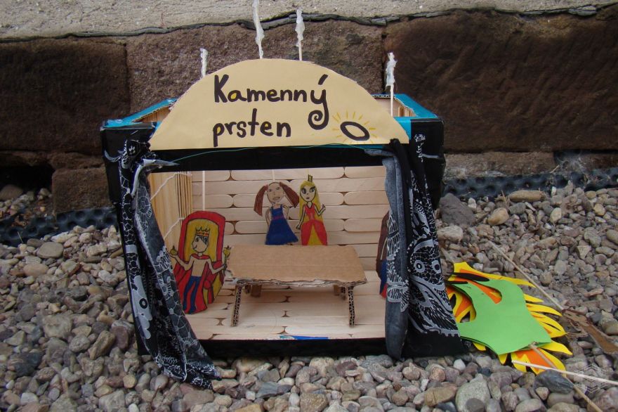 いろいろな材料を使って小さな箱の劇場や登場人物をつくり、