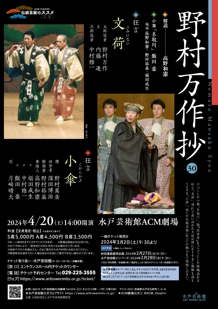 ※前売り券は販売を終了いたしました。キャンセル券が生じた場合、その都度 WEB・電話・窓口にて予約を受け付けます。