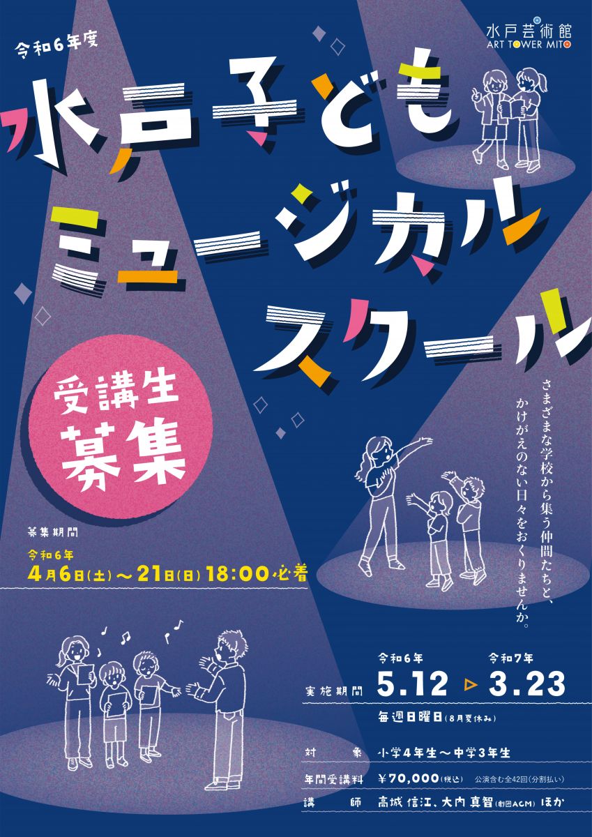 平成25年に開校し、今年で12期目をむかえる水戸芸術館ACM劇場が開講する教育プログラム。歌・ダンス・演技などの舞台表現を、プロの指導者がていねいに教え、舞台芸術への親しみや感受性を育みます。さらに、目標に向かって努力することを通して、仲間と共に助け合い、高め合う素晴らしさを知ることや、新しいことへ挑戦する勇気を獲得してもらうことを目的にしています。