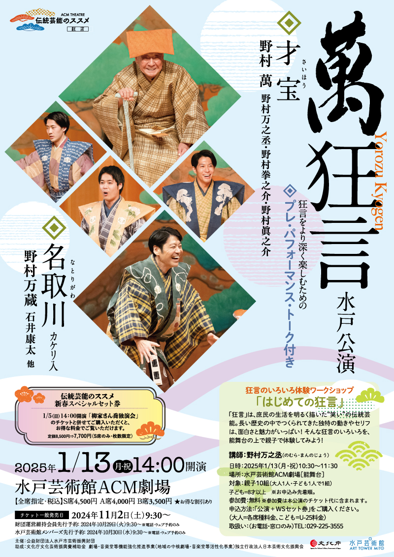 伝統芸能のススメ[狂言]萬狂言 水戸公演狂言のいろいろ体験ワークショップ「はじめての狂言」同日開催!