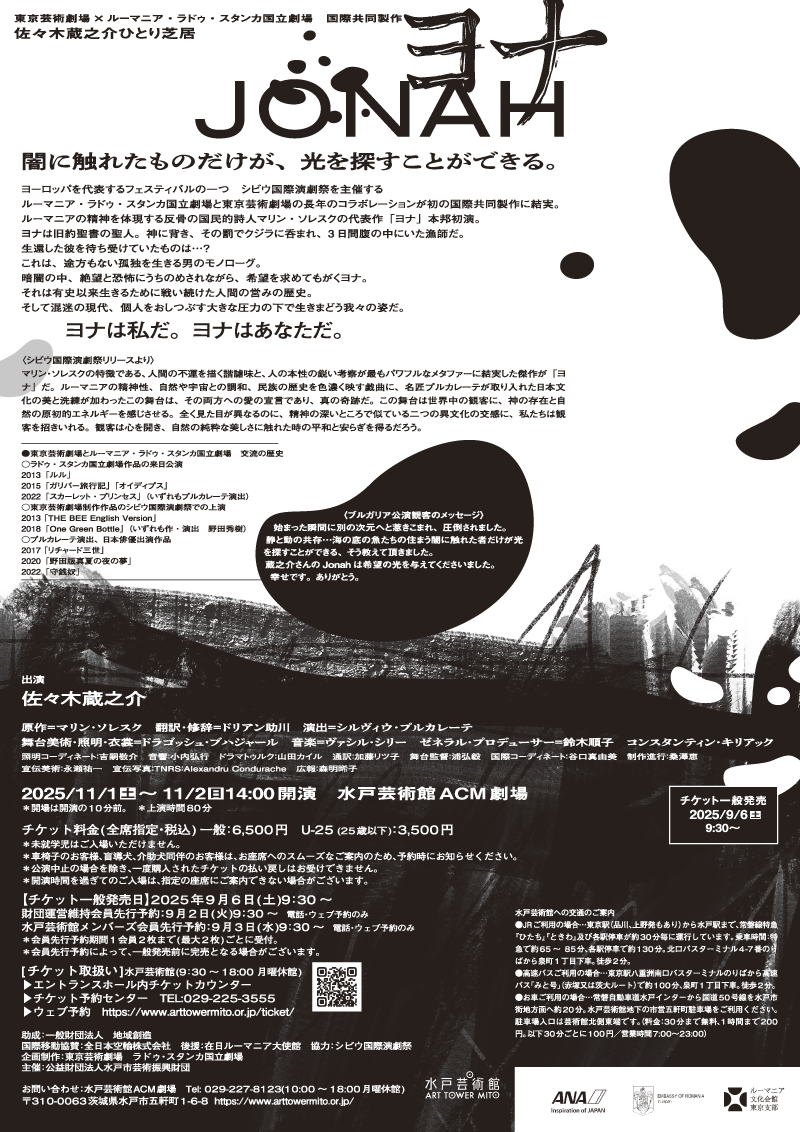 東京芸術劇場×ルーマニア・ラドゥ・スタンカ劇場 国際共同製作佐々木蔵之介ひとり芝居『ヨナ-Jonah』