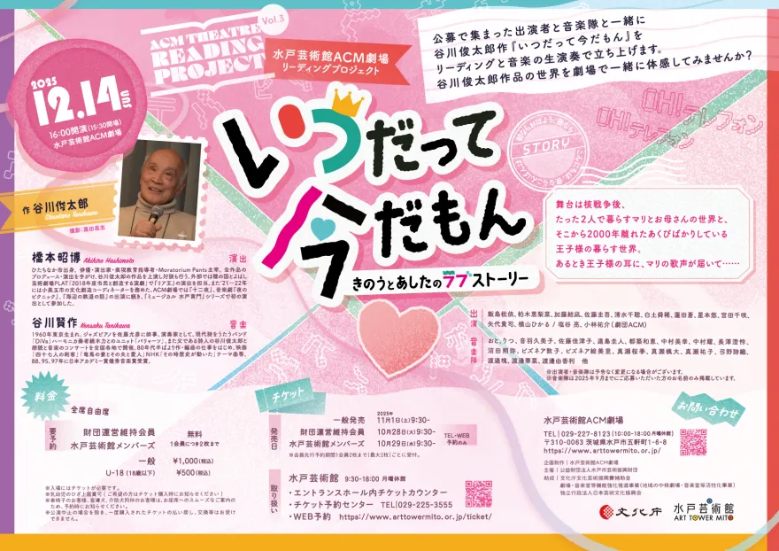 幅広い世代から支持される詩人・谷川俊太郎作『いつだって今だもん-きのうとあしたのラブストーリー』をリーディング公演として上演!
