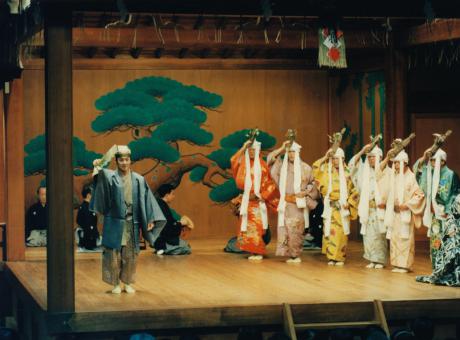 数々にちりばめられた謡や舞が印象的な、趣深い狂言です。梅の香りが漂ってくるような野辺の風情をお楽しみ下さい。