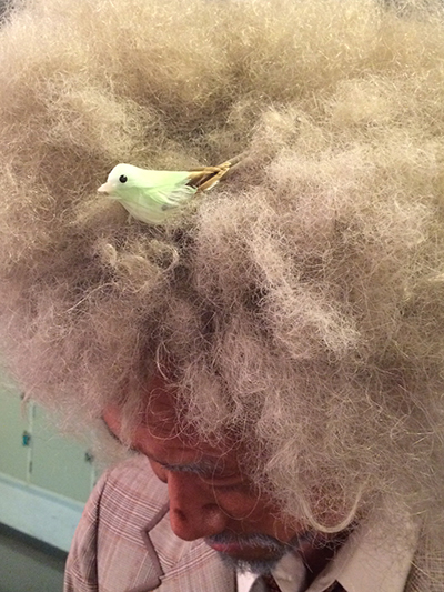 ロベルトさんは髪の毛のなかに、小鳥を飼っているのです。