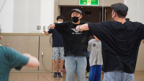 今秋開催される『目指せ ミュージカル水戸黄門?』関連企画として、本編にキャストとして出演いただくHIPHOPダンサーのTAKUさんに講師をお願いし、親子で参加いただくダンスワークショップを開催しました。優しい口調でかつ丁寧な進行の中、参加の皆様も開始早々、身体全体でリズムを取るようになっていました。柔軟体操に続いて基本ステップ、そしてステップを応用して振りをつけてもらい、曲に合わせて踊ってみました。学んだステップはポップコーン、パドプレ、ニュージャックスイング、ボックス、ロジャーラビットなど。手をつないだり、手を鳴らしたり、親子で協力してダンスを楽しまれていらっしゃいました。